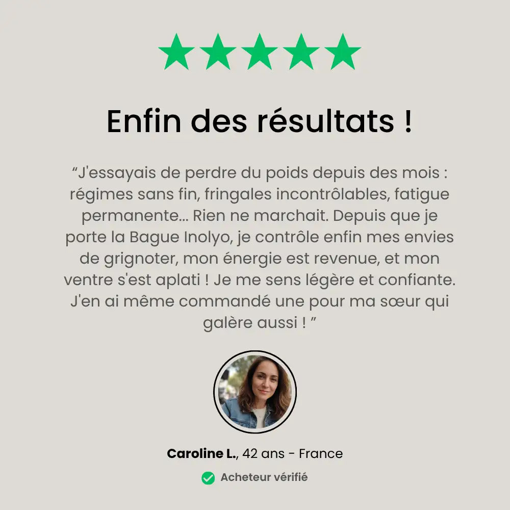 Les résultats peuvent varier, mais de nombreux utilisateurs rapportent ressentir les bienfaits de la bague Inolyo en quelques jours à quelques semaines d'utilisation.